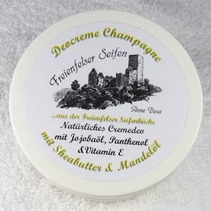 Zu dieser Deocreme "Champagne" verfügt die Freienfelser Seifenküche über weitere Rezepte für die handgemachte Naturseife im passenden Duft sowie die Sheabutter "Champagne"