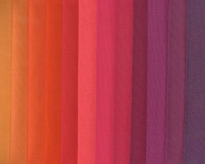 Das Paket enthält 12 Zuschnitte Fat Quarter, jeweils ca. 50cm x 55cm aus der Kollektion "Kona Cotton" von Robert Kaufman, USA. Alle Stoffe sind Patchworkstoffe aus 100% Baumwolle.