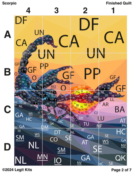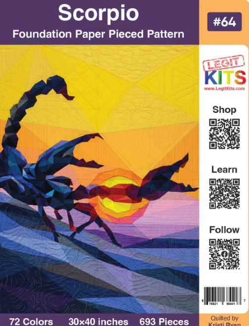 Nähen sie diesen schicken Skorpion vor dem eindrucksvollen Hintergrund mit der fantastischen Anleitung "Legit Kits Scorpio" ganz einfach auf Papier! Das Motiv entsteht aus 72 Farben und wird 30x40 Inches groß (ca. 0,76 x 1,02 Meter).