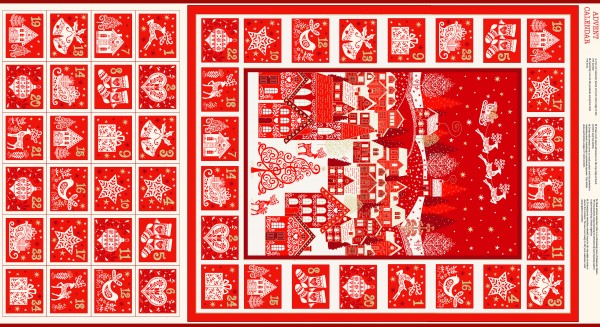 In 0,60 Meter Stoff sind die Vordrucke zum Nähen eines Adventskalenders sowie die Nähanleitung enthalten. Die Vordrucke umfassen den gesamten Hintergrund des Kalenders sowie die 24 Täschchen. Die 24 kleinen Täschchen zum Füllen sind auf dem Hintergrund des Panels aufzunähen. BITTE BEACHTEN - Sie benötigen zusätzlichen Stoff für die Rückseiten des Adventskalenders sowie zum Einbinden!