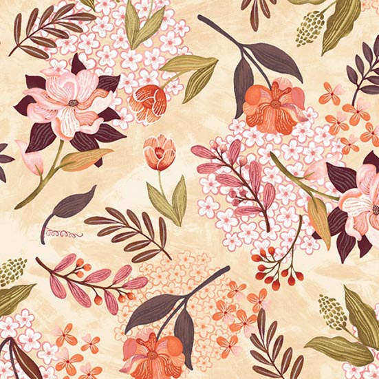 Patchworkstoff Canyon Birds 09 aus der Kollektion "Canyon Birds", Quiltstoff aus 100% Baumwolle, Design Jennifer Brinley, Hersteller Studio e Fabrics, USA. Der Stoff liegt ca. 1,10 Meter breit.