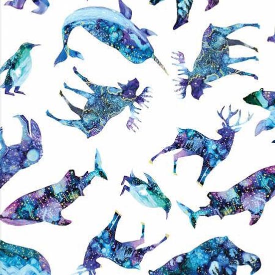 Patchworkstoff Arctic Wonder 05 mit Gold-Metallic-Druck aus der Kollektion "Arctic Wonder", Quiltstoff aus 100% Baumwolle, Hersteller 3-Wishes Fabrics, USA. Der Stoff liegt ca. 1,10 Meter breit.