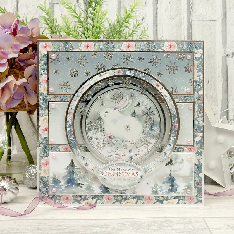 Das Topper Set "A Winter's Wish" von Hunkydory UK bietet das Zubehör zur Herstellung von mindestens 2 dekorativen Karten im Stil der Kollektion "Winter Forest". Die Packung enthält